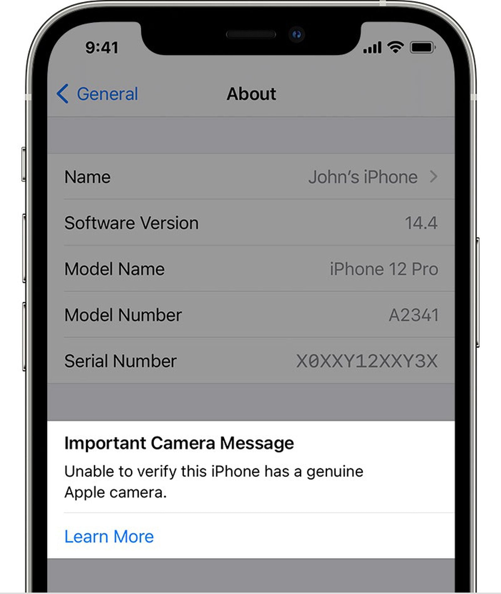 A camera replacement has been carried out and notifications will show in phone & settings as shown in pics.