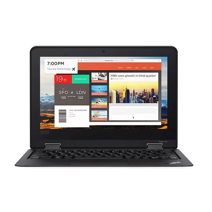 The Lenovo ThinkPad Yoga 11E Gen 5 is a durable & versatile 2-in-1 touchscreen laptop with a responsive 11.6-inch HD display, ideal for web browsing, document editing, and multimedia use. Its 360-degree hinge lets users switch between laptop, tablet, tent, and stand modes, offering flexibility for various work or learning situations.