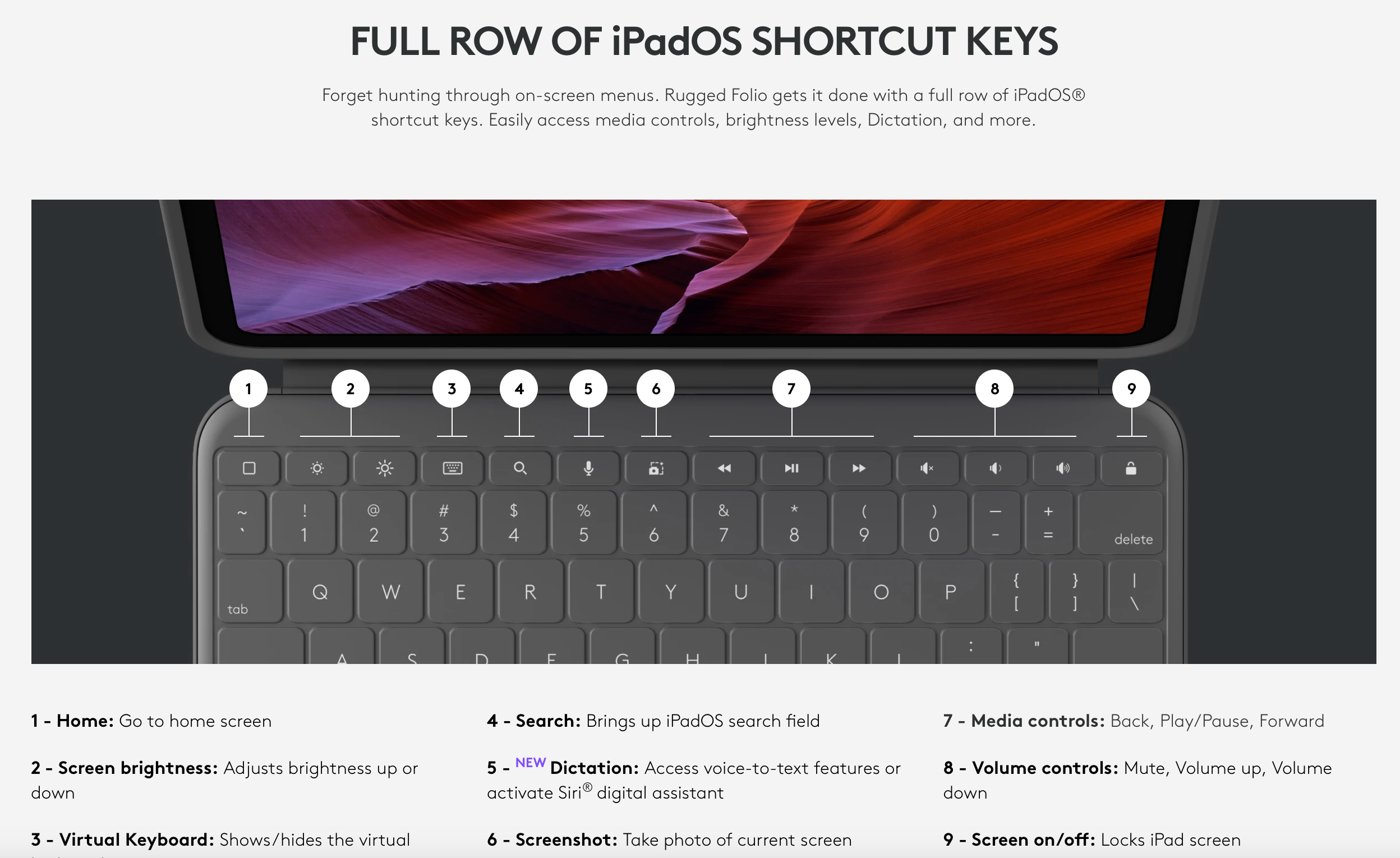 Row of iPadOS Shortcut Keys (Left to Right)