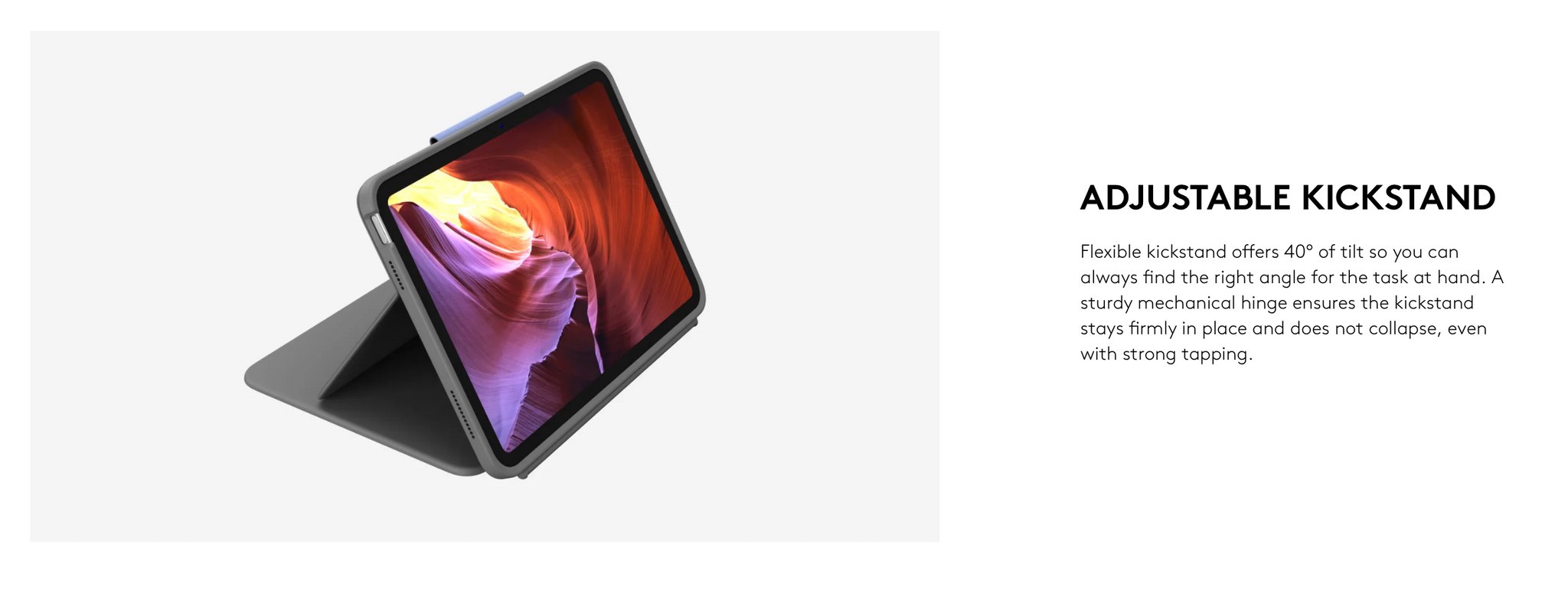 Turn your iPad into a laptop in one click. Well-spaced keys and iOS shortcuts make typing fast and comfortable. The Pre Owned Slim Folio locks your iPad at an optimal angle for typing and holds firm on any surface from a desk to your lap. Slim design fits perfectly and protects iPad from bumps, scratches and spills without weighing you down. Easy setup, a reliable Bluetooth low energy wireless connection, and long lasting battery life make the Slim Folio an indispensable tool for iPad.